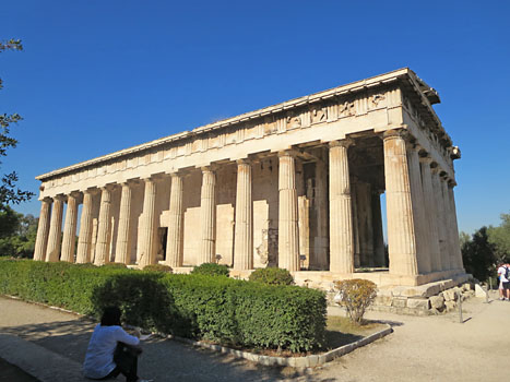 Je vyzdoben mnoha citlivì restaurovanými freskami z té doby s námìty svatých a Krista.A pak u¾ procházíme obrovským prostranstvím, kde mezi stromy a keøi nacházíme odkryté základy oltáøe a chrámu boha Arése a ještì mnohem staršího Agrippova chrámu z 15. století pø. Kristem. Velmi zajímavý je také pomník dvanácti heroù, od kterého se mìøily vzdálenosti z Athén do dalších øeckých mìst. Ale to u¾ nás láká mohutná stavba Hefaistova chrámu na pahorku na okraji Agory. Je to údajnĕ nejzachovalejší staroøecký chrám na svìtì. V 5. století pøed naším letopoètem si ho dali postavit zdejší øemeslníci, proto¾e Hefaistos byl bohem kováøù, slévaèù a kovotepcù. V dobách turecké nadvlády pøestavìli chytøí øekové chrám na kostel, zakryli ho zdmi a stavba tak pøeèkala bez úhony zlé doby. Teï mù¾eme obdivovat pùvodní dórské sloupy i ozdobné vlysy, na kterých jsou znázornìny hrdinské èiny Herkula a Thésea.
