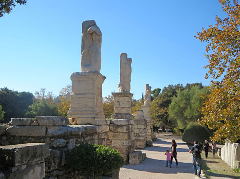 Jako vìtšina ostatních budov Agory byla tato Attalova Stoa v pozdìjších válkách témìø znièena a teprve a¾ v 2.polovinì 20.století rekonstruována do pùvodní podoby. Patrová budova má v pøízemí rozlehlou otevøenou a mramorem vydlá¾dìnou dvoranu, která nám v horku poskytuje pøíjemný chládek. A také pohled na øadu soch, které v nás vzbuzují vzpomínku na verše pana Erbena. Jsou tu toti¾ mnohá tìla bez hlav a naopak také dost samotných hlav bez tìl. Tak, jak byly sochy bohù, králù, císaøù, atletù a také ¾en, nalezeny v obvodu nìkdejšího slavného tr¾ištì.