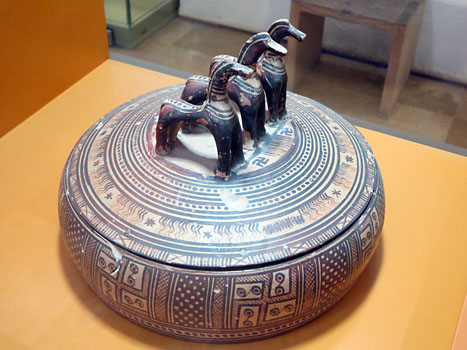 Mno¾ství keramiky - kresbami zdobené vázy a mísy, sošky, šperky a dávné zbranì. Hroty kopí a šípù, typické bronzové pøilby a velký bronzový štít. A v prvním patøe jako pøídavek busty krásných athénských ¾en.