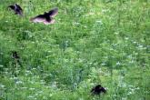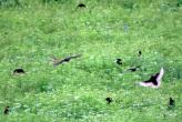 Jednoho dne jsem sedìl v podveèer na posedu stojícím na pokraji lesa s výhledem nejen na pole, ale i na veliký horizont. Pole bylo oseto høebíèkem a heømánkem. Na pastvu sem chodila zvíøátka i pøilétali ptáèci z celého okolí. Z èista jasna, sem také pøilétl velký houf ptákù, kteøí migrovali z místa na místo. Zachytit je v jejich pohybu nebylo snadné, a proto snímky nejsou pøíli¹ kvalitní. I pøesto v¹ak snad ukazují ptáky ve své velikosti i zbarvení. Je¹tì jsem je zde pøedtím nikdy nevidìl, právì tak, jako jsem je do tohoto okam¾iku nespatøil ve svém ¾ivotì. Doká¾e mi nìkdo øíci o jaké ptáky se jedná? |