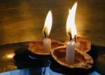 s malou svíèkou pou¹tìjí èlenové rodiny po vodì v umyvadle nebo míse naplnìné