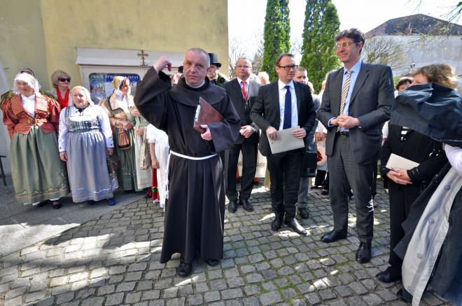 Aktu oficiálního navrácení zvonù se zúèastnil také velvyslanec SRN Freytag von Loringhoven i delegát Ministerstva zahranièí nebo místní pøedstavitelé mìsta a církve. Nìmecko zvony vrátilo èeské stranì na své náklady u¾ v polovinì prosince. Ty ale nejprve putovaly do zvonaøské dílny v Brodku u Pøerova, kde prošly oèistou a restaurátorskými pracemi. Mìsto na lázeòskou kúru pøispìlo èástkou 140 tisíc korun.